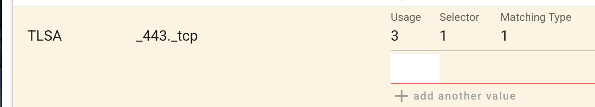 {“subname”: ”second subname ”, “type”: “TLSA”, “ttl”: 3600, “records”: ["3 1 1 $tlsa_hash”]},