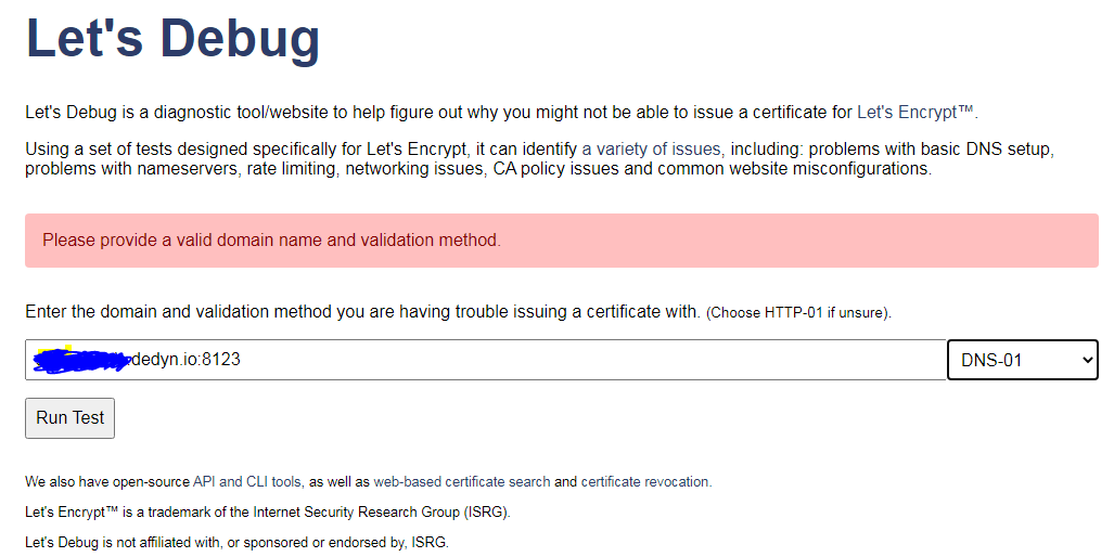 It doesn’t allow to give a domain with a port : domain.com:8123