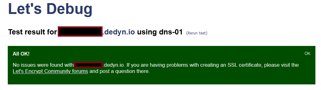 I tried to replace my duckdns (working but not stable enough) by deSEC and faced the followng issue.